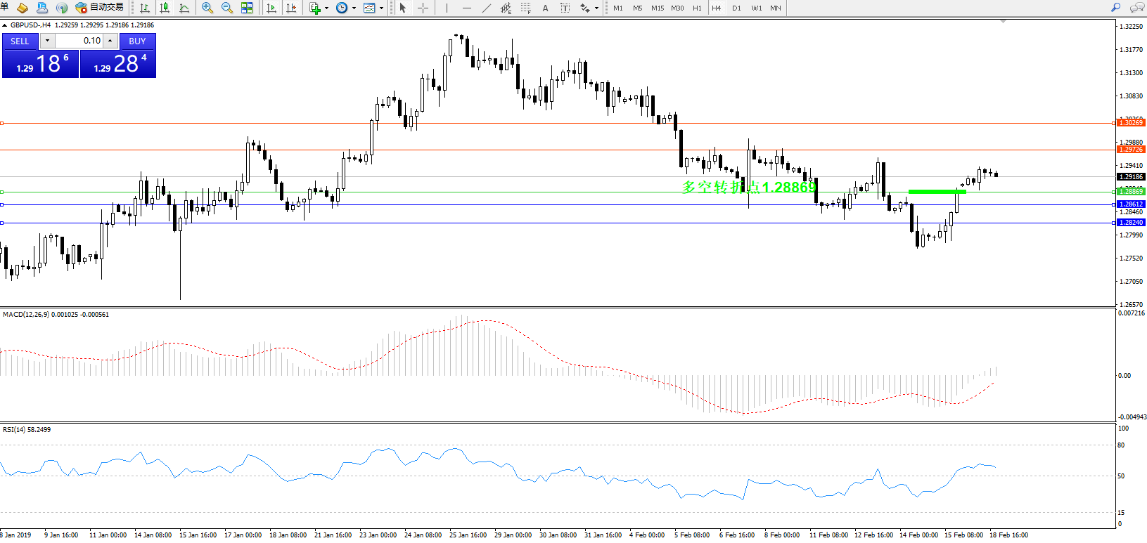 交易策略:1.28869上方看涨,目标1.297261.30269