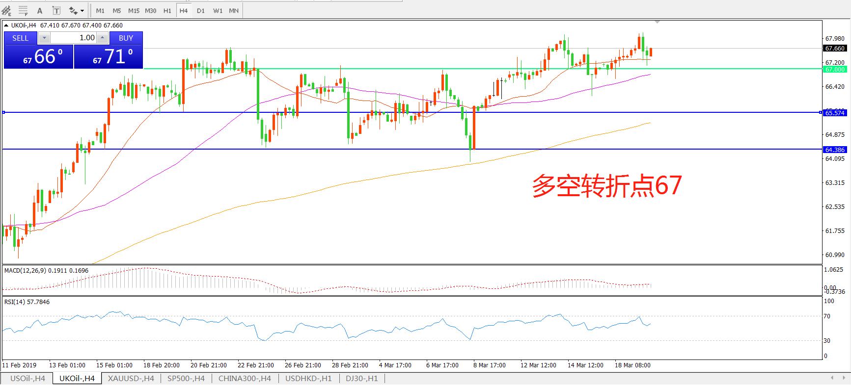 3月19日周二,虽然减产行动依然为油价提供支撑,但市场在EIA库存报告以及美联储政策决议公布前保持谨慎,这令油价整体持稳于平盘附近。布伦特原油周二(3月19日)收涨0.07美元,报67.61美元/桶。3月20日凌晨,美国石油协会公布API原油库存数据,预期减少77.5万桶,实际减少213.3万桶,利多油价。晚间22:30将公布EIA原油库存数据,目前市场预期减少77.5万桶,重点关注。