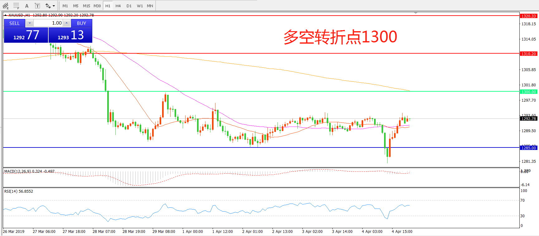 多空转折点:1300.00