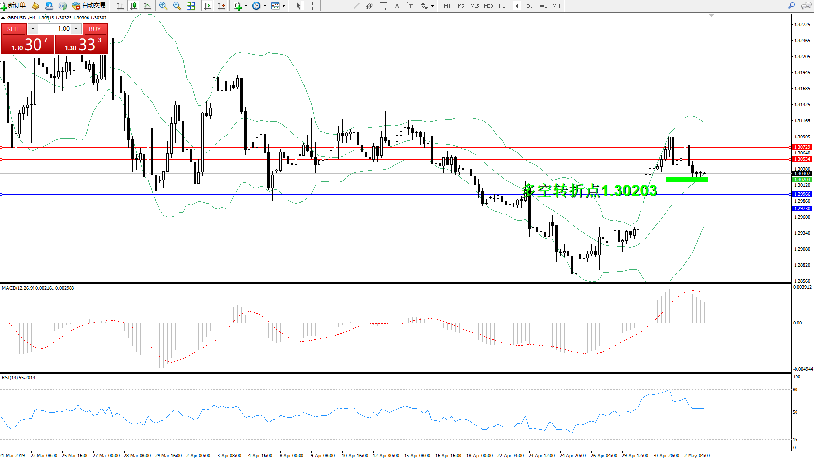 交易策略:1.30203上方看涨,目标1.30534、1.30729