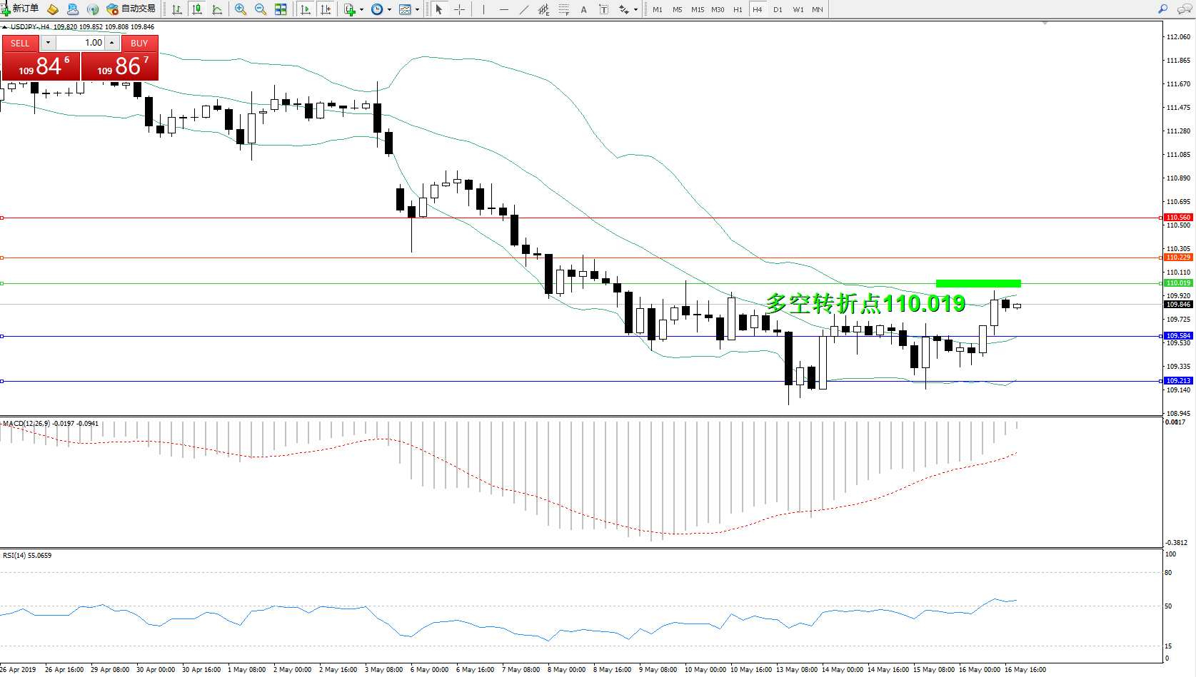 交易策略:110.019下方看跌,目标109.564109.213