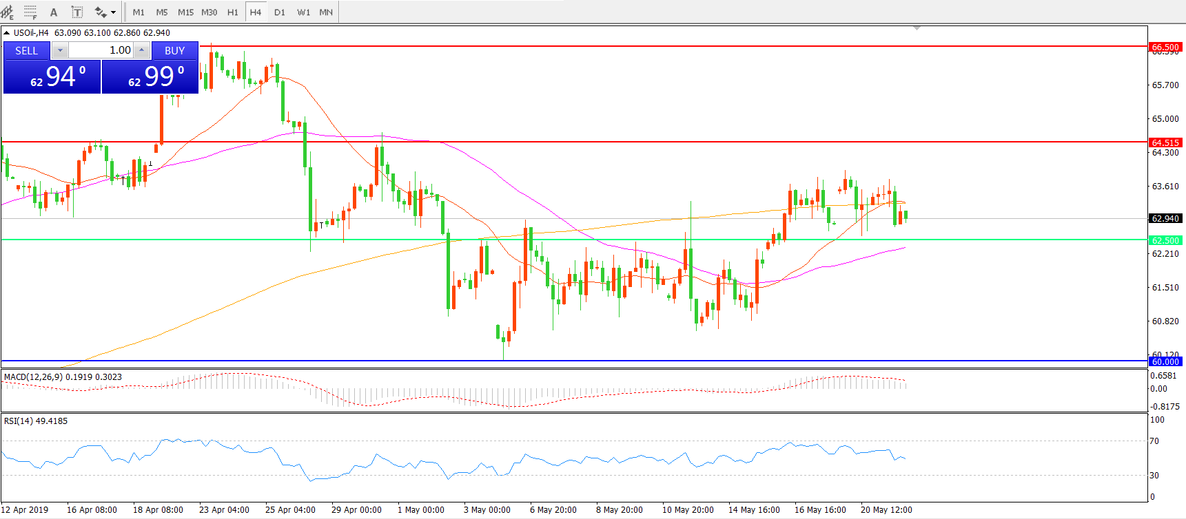 交易策略:在62.50之上看涨,目标64.50 66.50