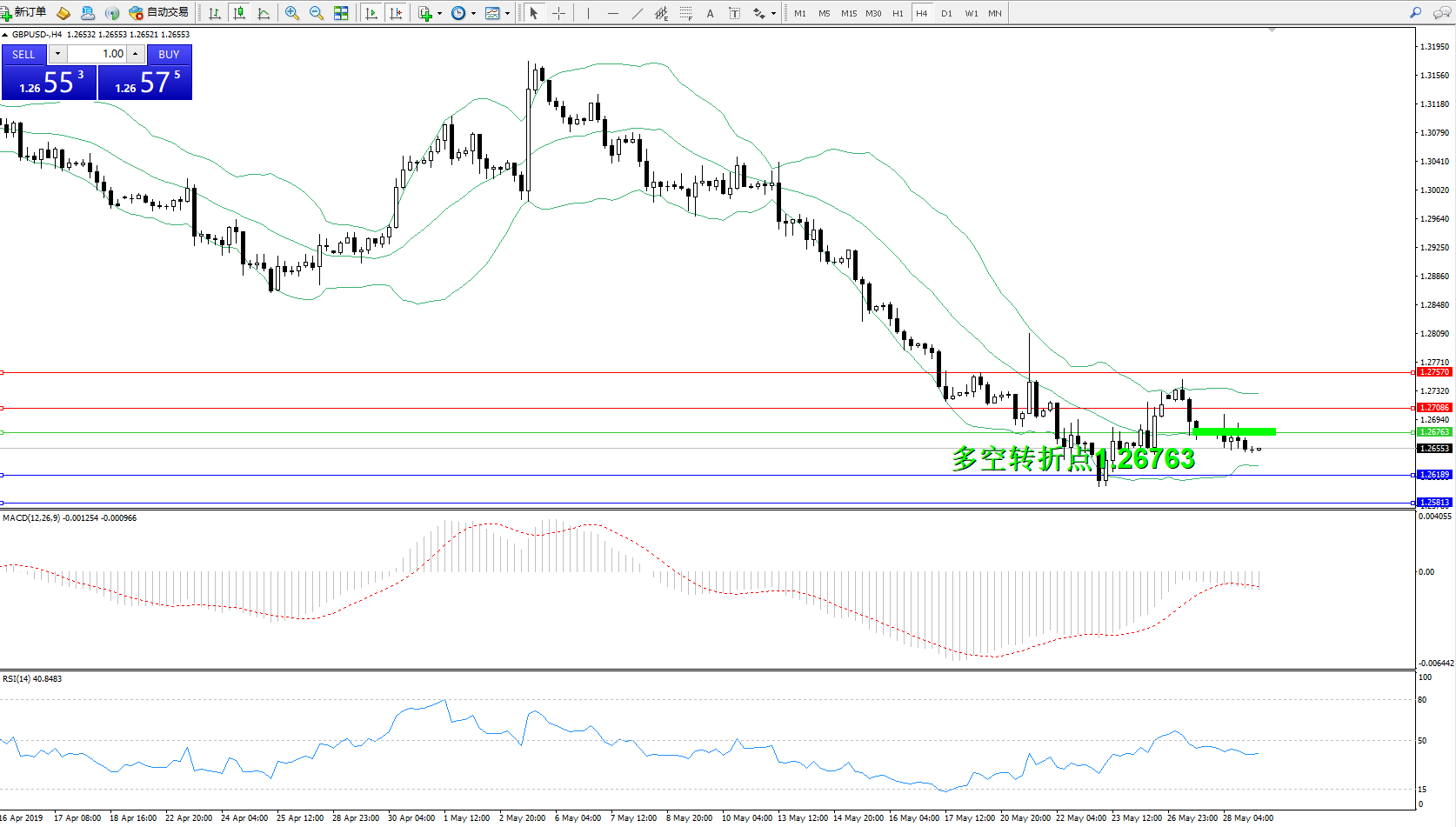 交易策略:1.26763下方看跌,目标1.26189、1.25813