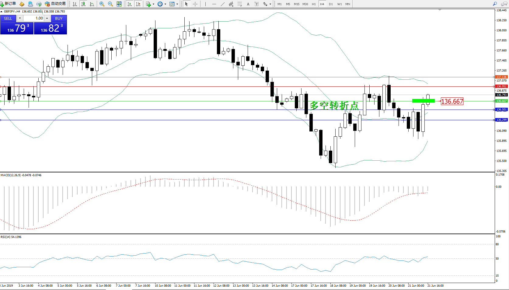 交易策略:136.667上方看涨,目标136.952137.136