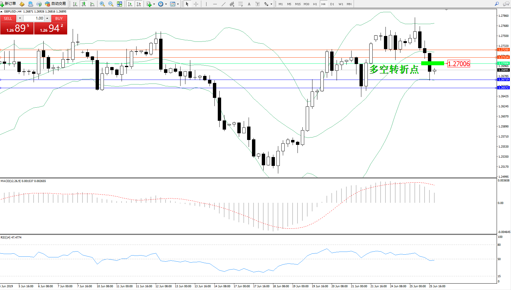 交易策略:1.27006下方看跌,目标1.26719、1.26572