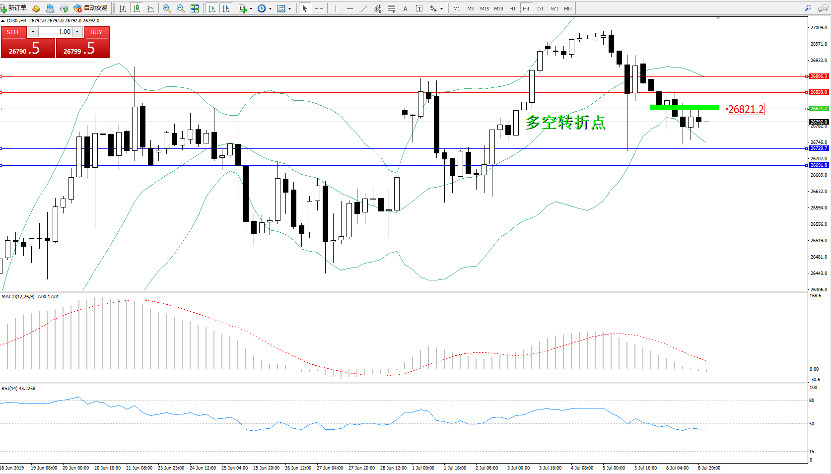 交易策略:26821下方看跌,目标26729、26691