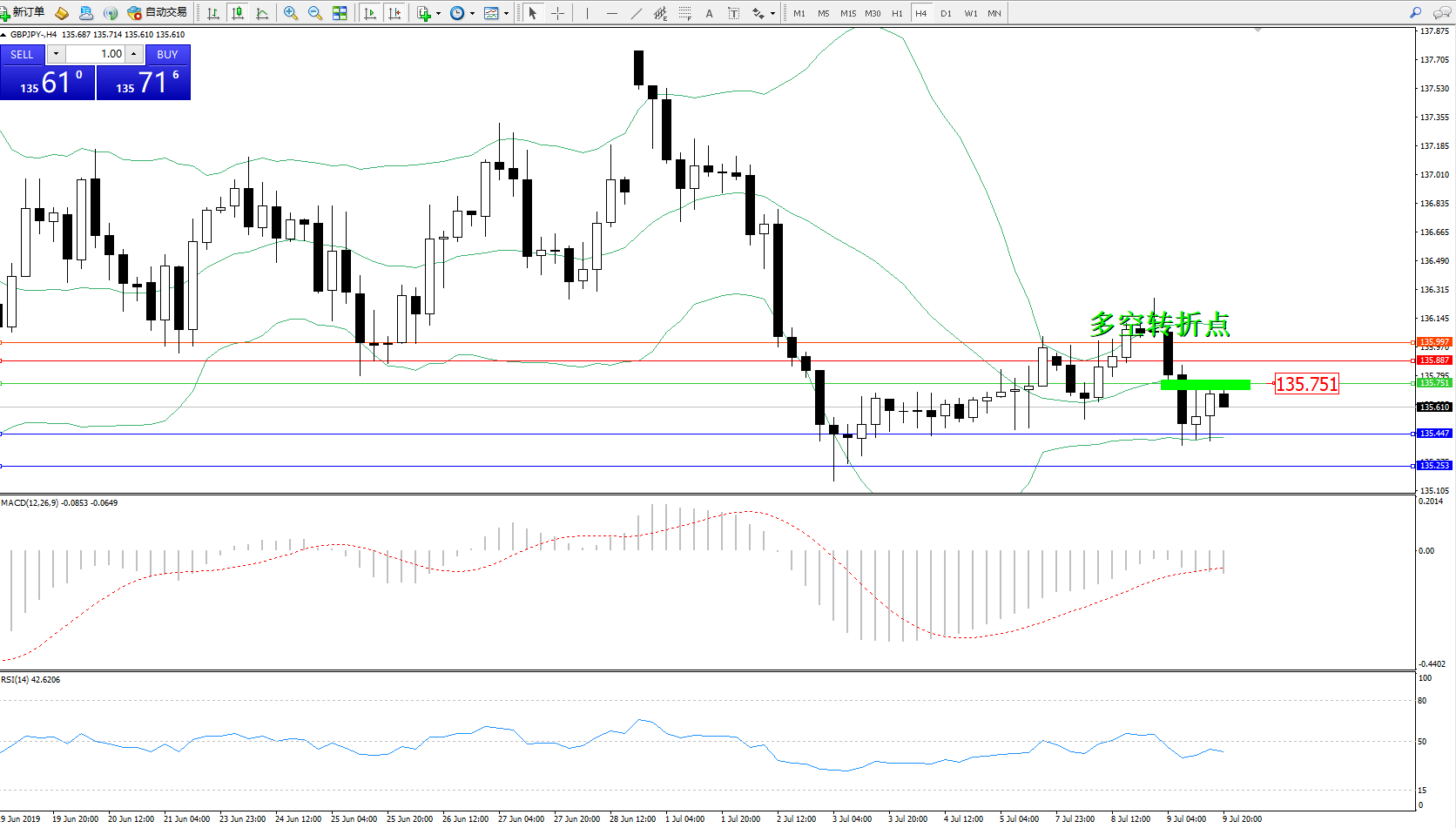 交易策略:135.751下方看跌,目标135.447135.253