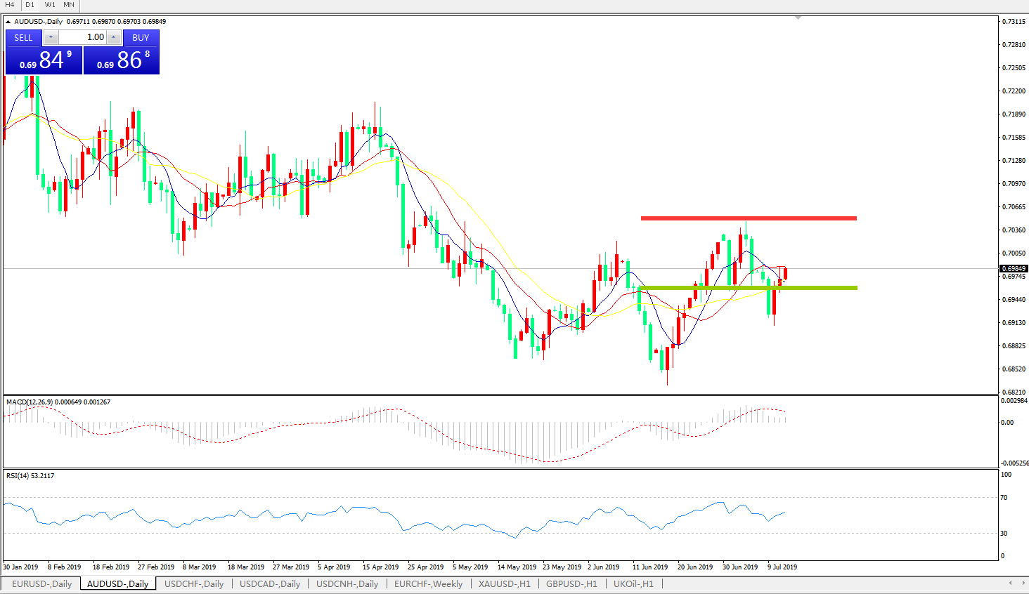 交易策略:0.6960上方看涨,目标0.70200.7100