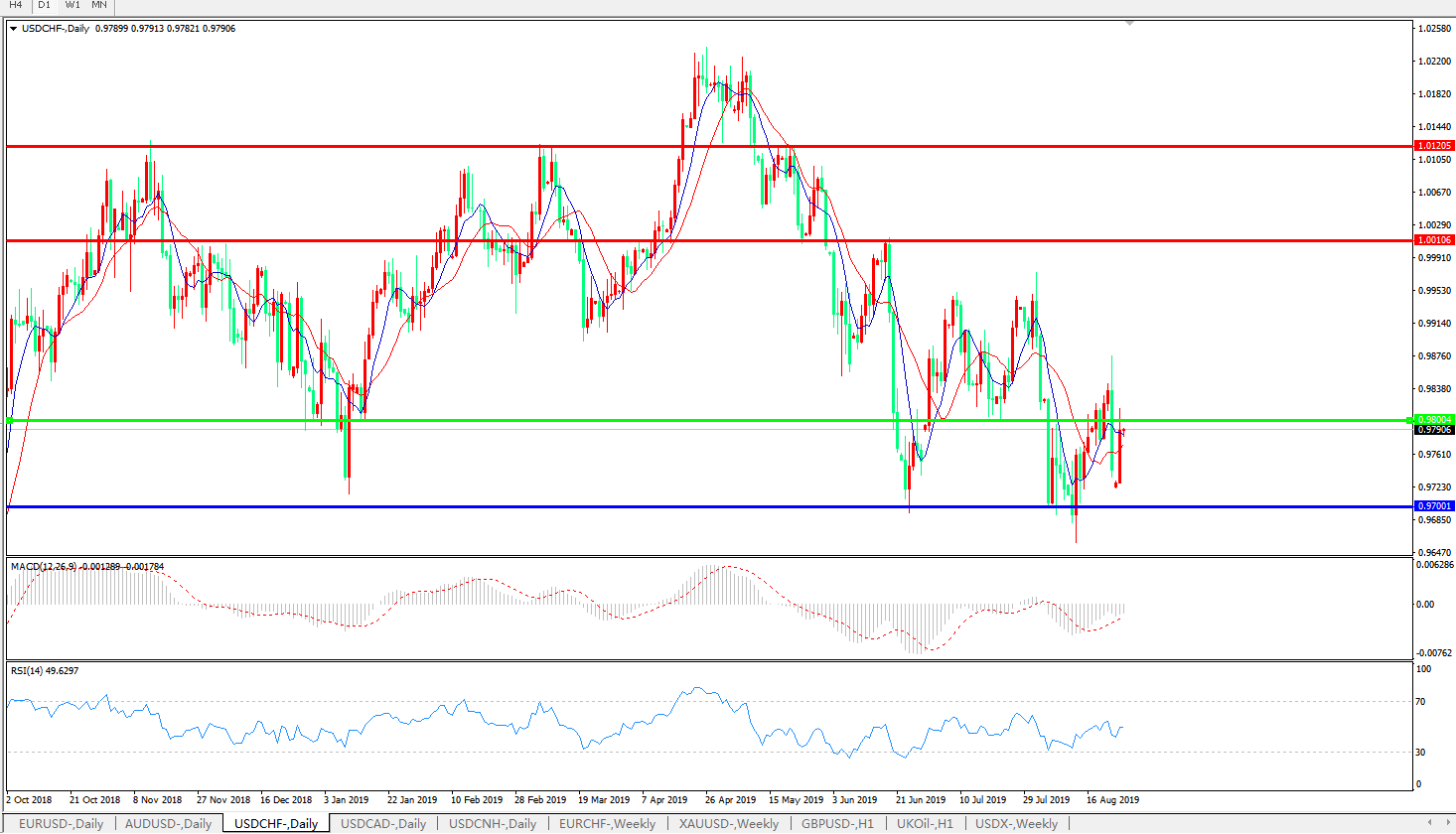 美元瑞郎USDCHF   日线图: