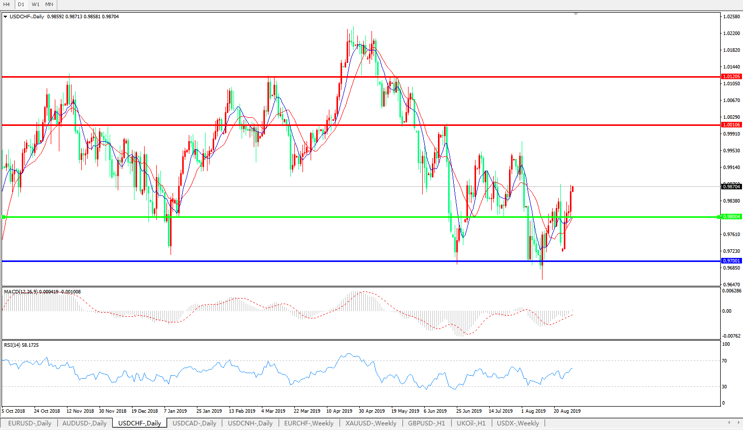 美元瑞郎USDCHF   日线图: