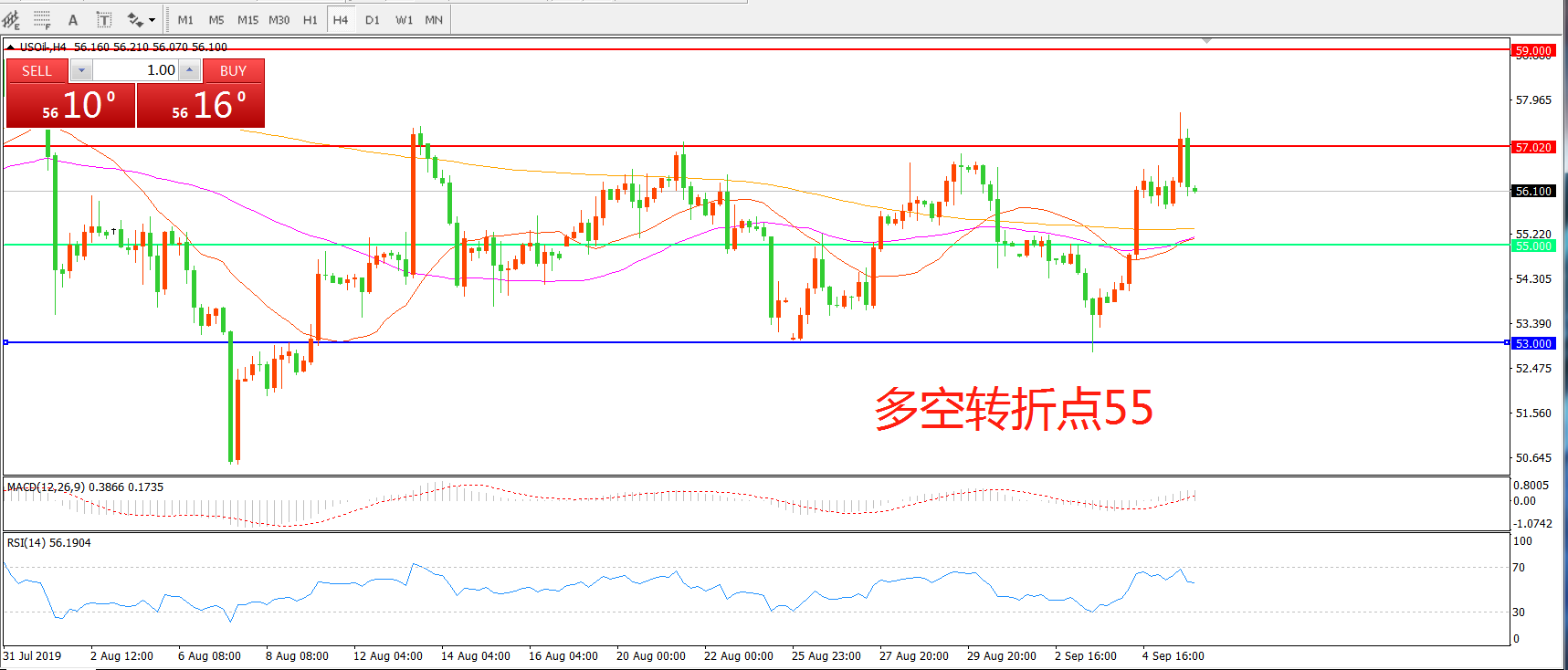 多空转折点:55.00