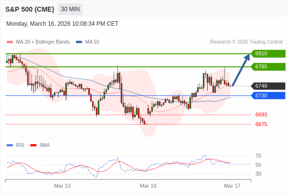 在 6730 之上,看涨,目标价位为 6785 ,然后为 6810 。