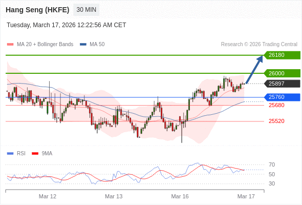 在 25760 之上,看涨,目标价位为 26000 ,然后为 26180 。