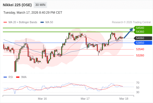 在 53850 之上,看涨,目标价位为 54360 ,然后为 54540 。