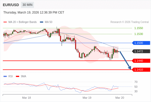 在 1.1500 之下,看跌,目标价位为 1.1440 ,然后为 1.1410 。