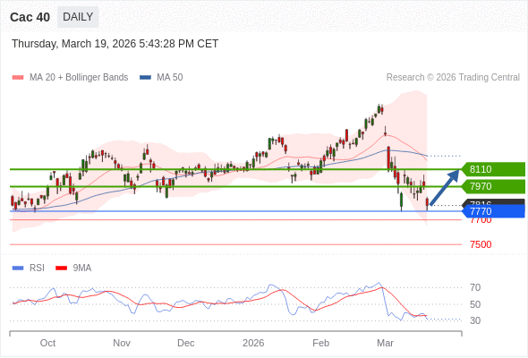 在 7770 之上,看涨,目标价位为 7970 ,然后为 8110 。