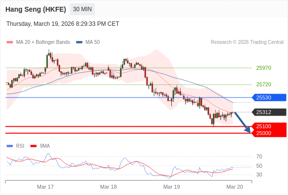 在 25530 之下,看跌,目标价位为 25100 ,然后为 25000 。