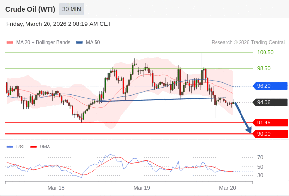 交易策略: 在 96.20 之下,看跌,目标价位为 91.45 ,然后为 90.00 。