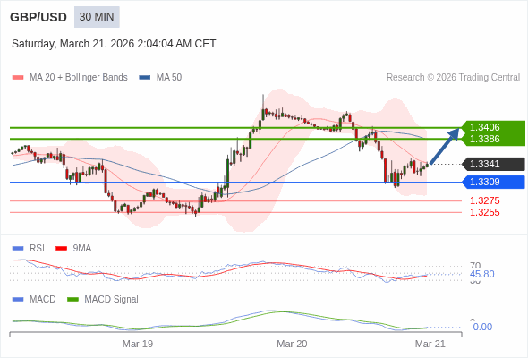 英镑/美元 当日内 : 有上涨的可能,目标价位定在 1.3406 。