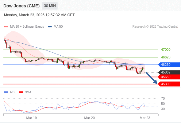 在 46260 之下,看跌,目标价位为 45650 ,然后为 45300 。