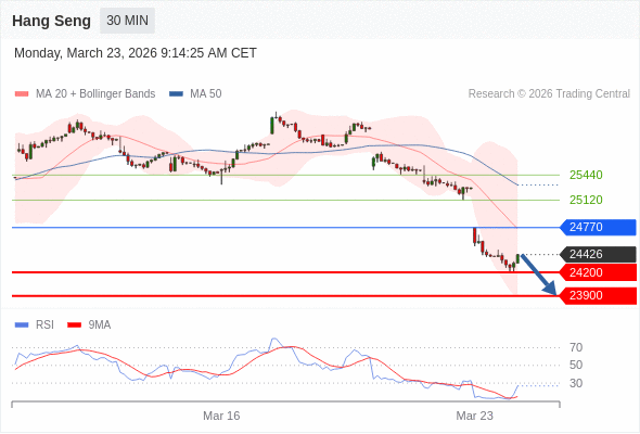 恒生指数 当日内: 短期关键阻力位在24770。
