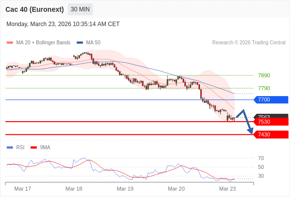 在 7700 之下,看跌,目标价位为 7530 ,然后为 7430 。