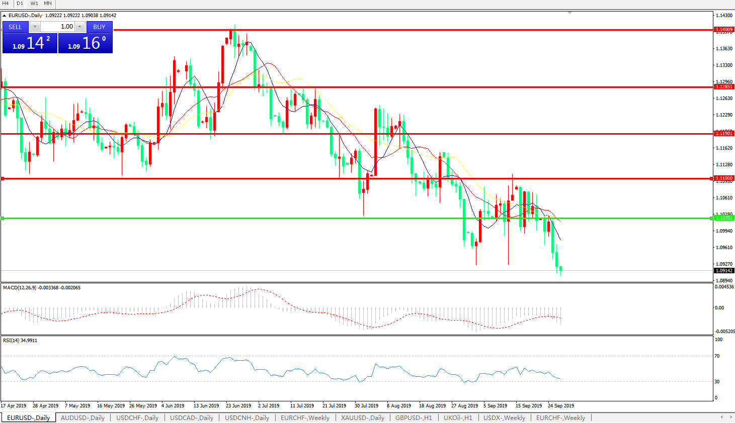 交易策略:1.1020下方看跌,目标1.0800、1.0600