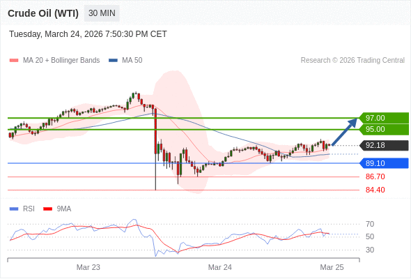 在 89.10 之上,看涨,目标价位为 92.60 ,然后为 95.00 。