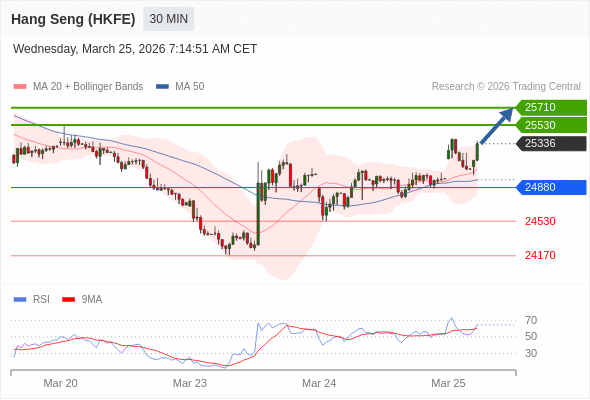 在 24880 之上,看涨,目标价位为 25530 ,然后为 25710 。
