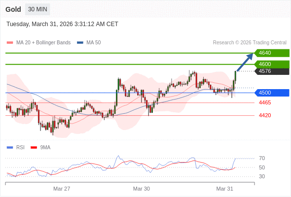 在 4500 之上,看涨,目标价位为 4600 ,然后为 4640 。