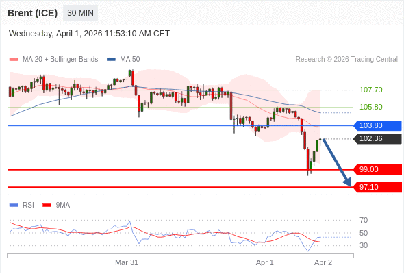 在 103.80 之下,看跌,目标价位为 99.00 ,然后为 97.10 。
