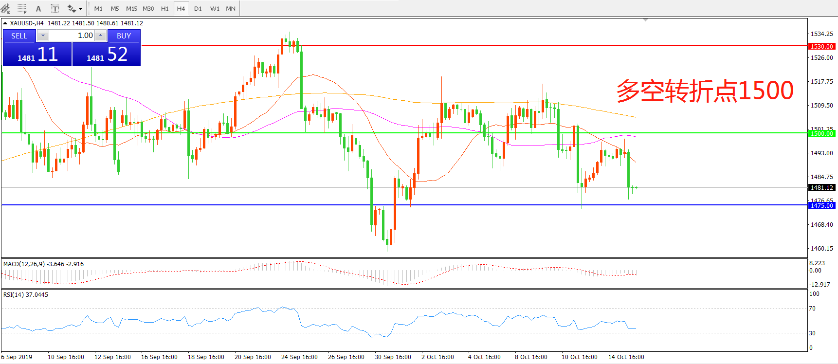 多空转折点:1500.00
