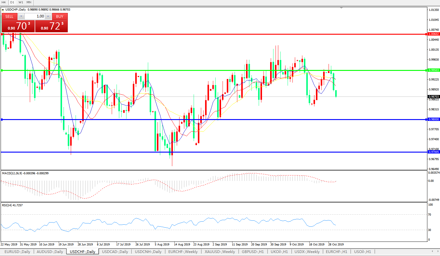交易策略:0.9950下方看跌,目标0.9800、0.9700
