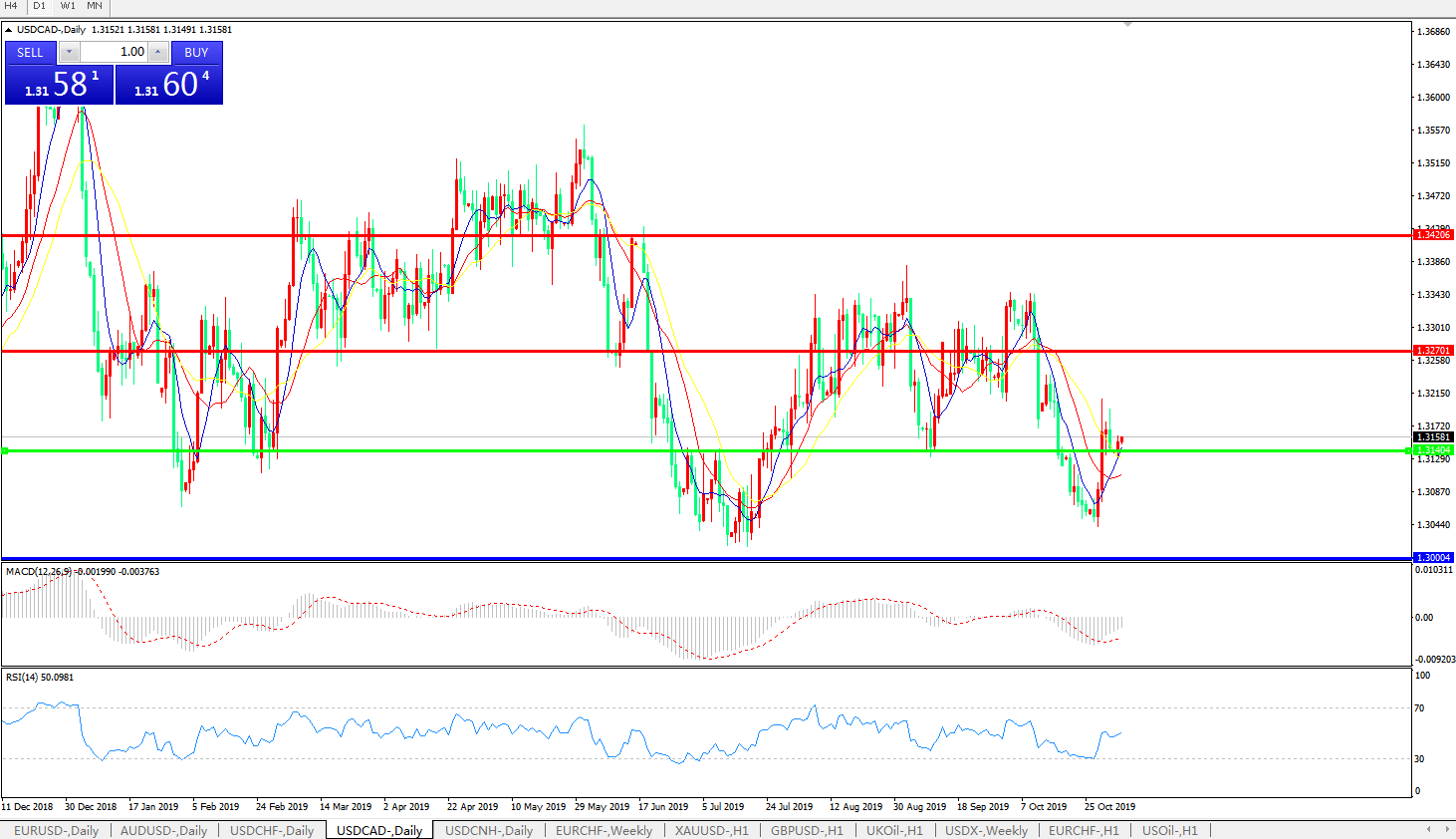 美元兑加元USDCAD    日线图: