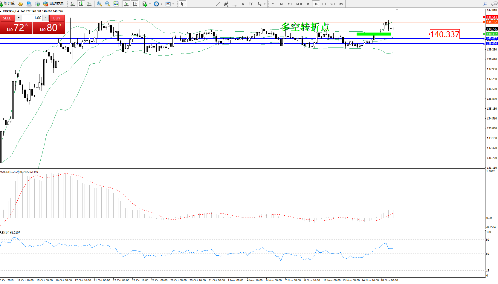 交易策略:140.337上方看涨,目标141.162、141.513