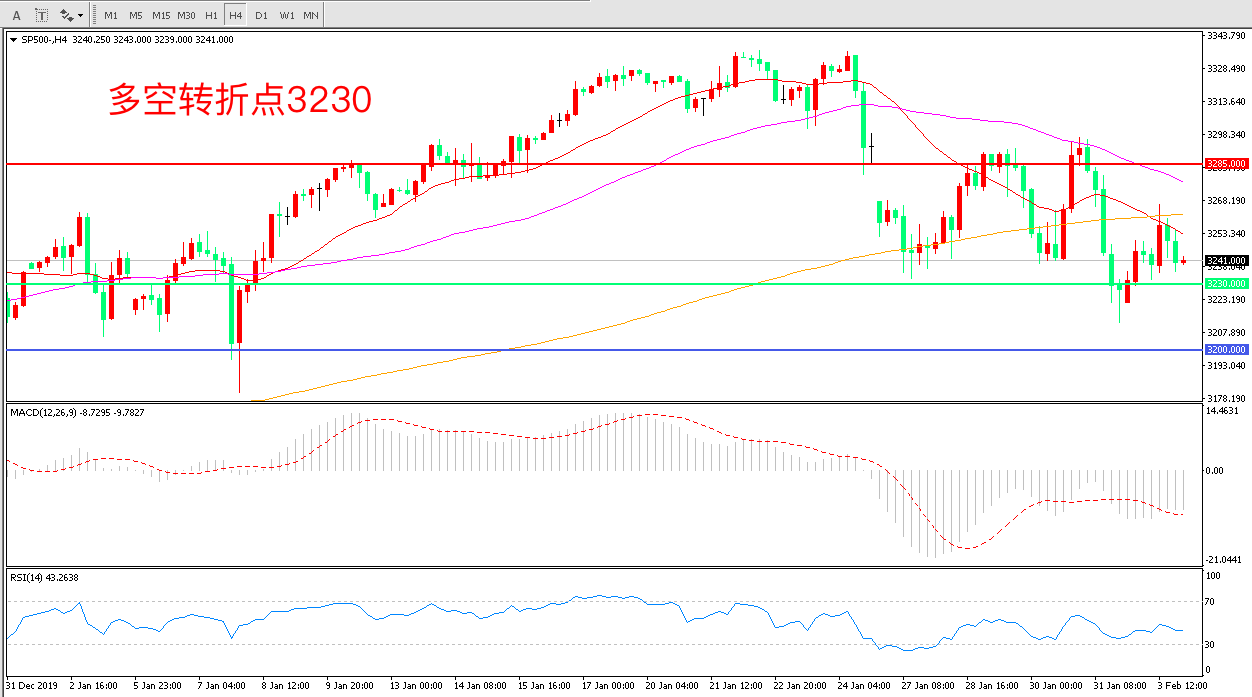 交易策略:在3230.00之下看跌,目标3200.00        3150.00