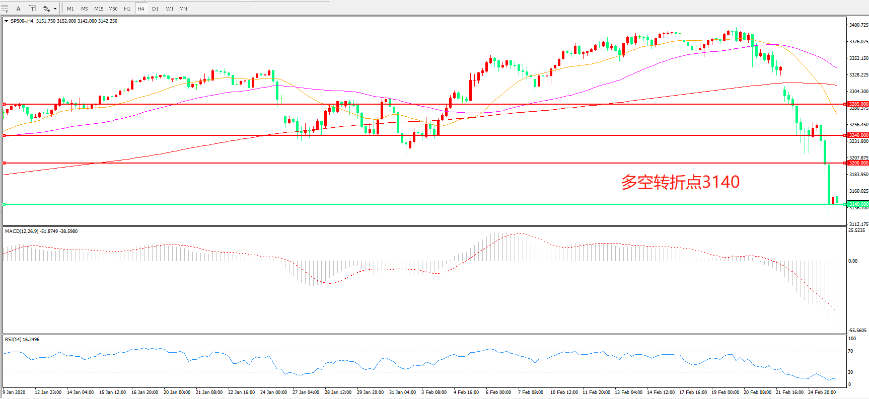 多空转折点:3140.00