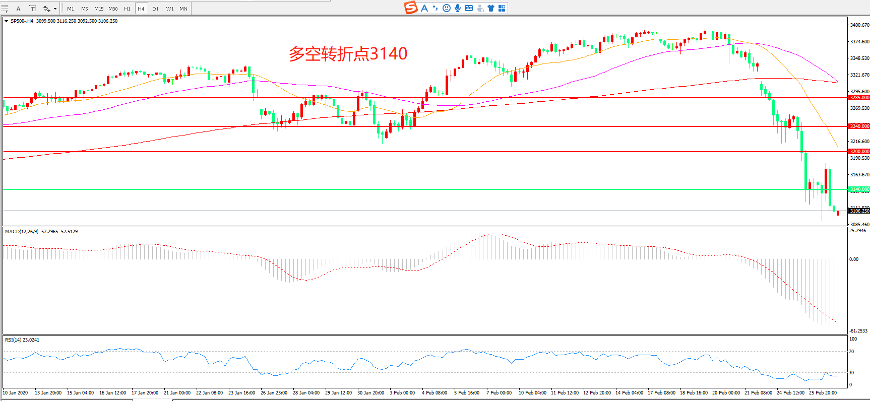 多空转折点:3140.00