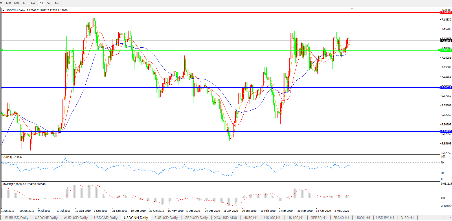 交易策略: 在7.1000之上,看涨,目标价位为7.2000,然后为7.3000。
