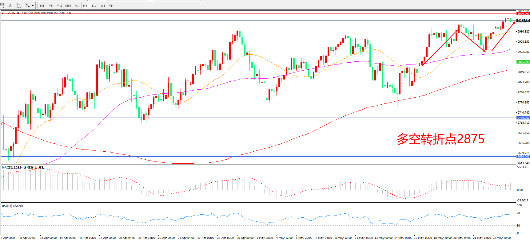 标普500 SP500   4小时图