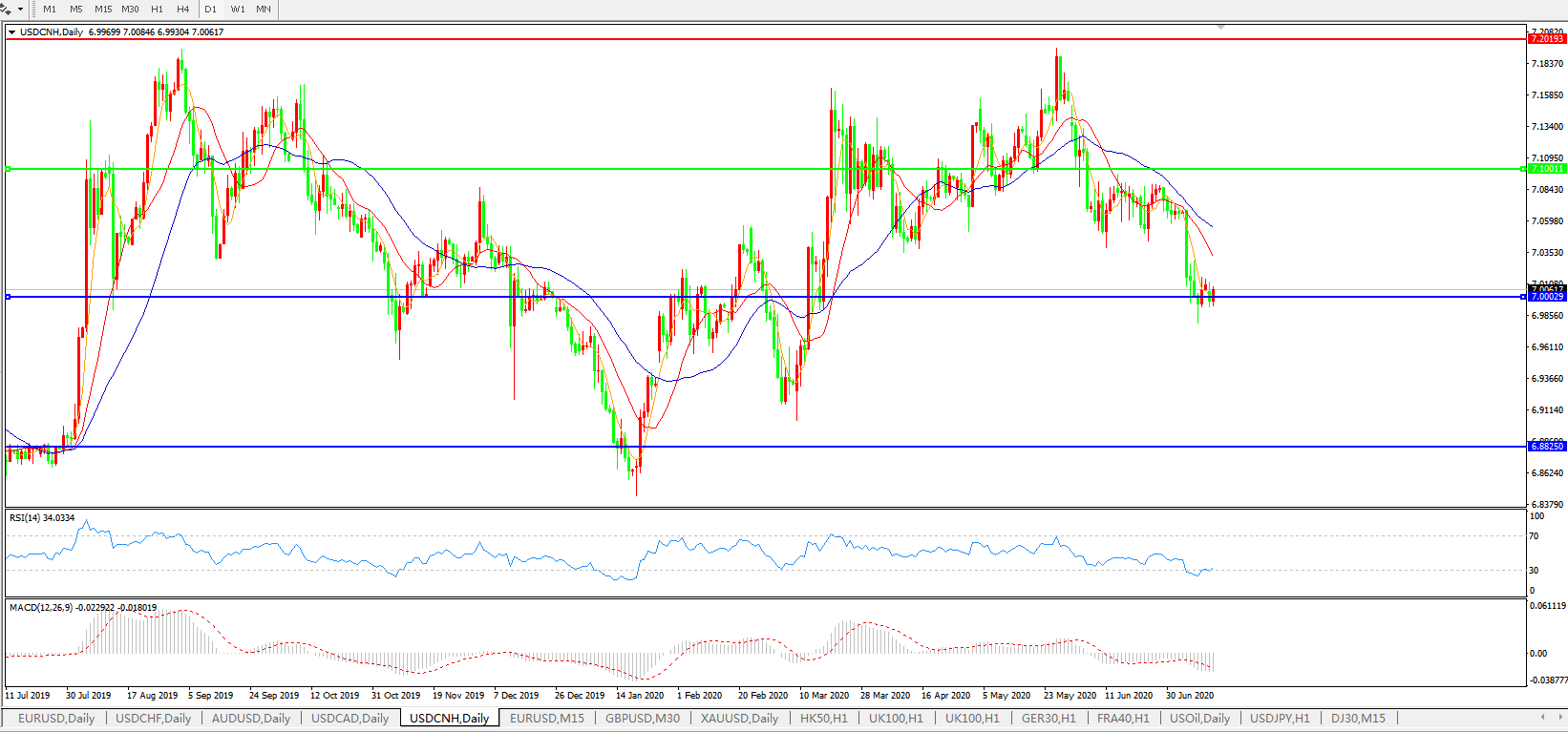 美元兑人民币USDCNH 日线图: