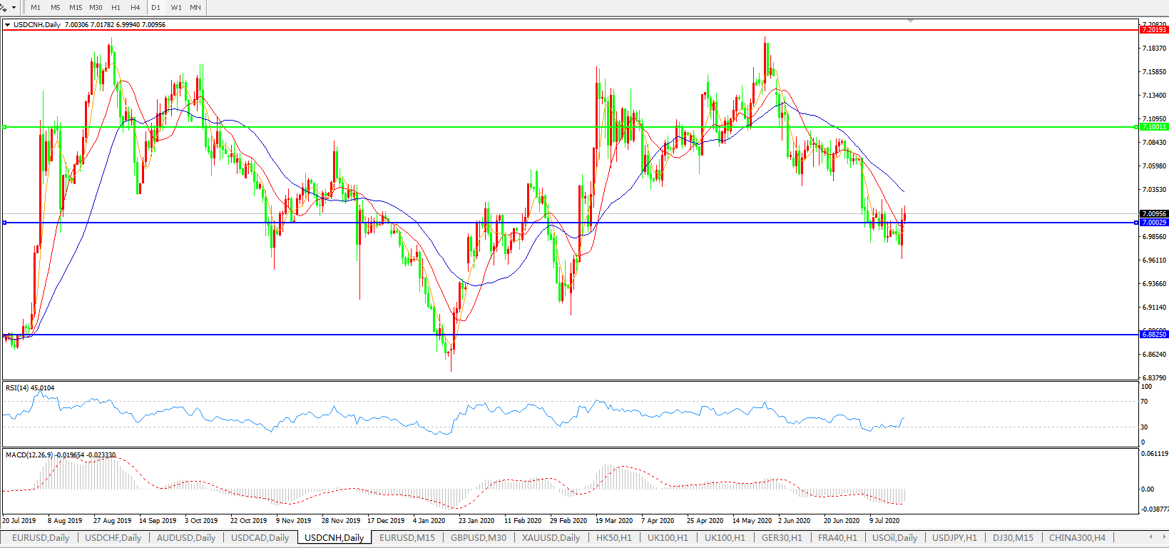 美元兑人民币USDCNH 日线图: