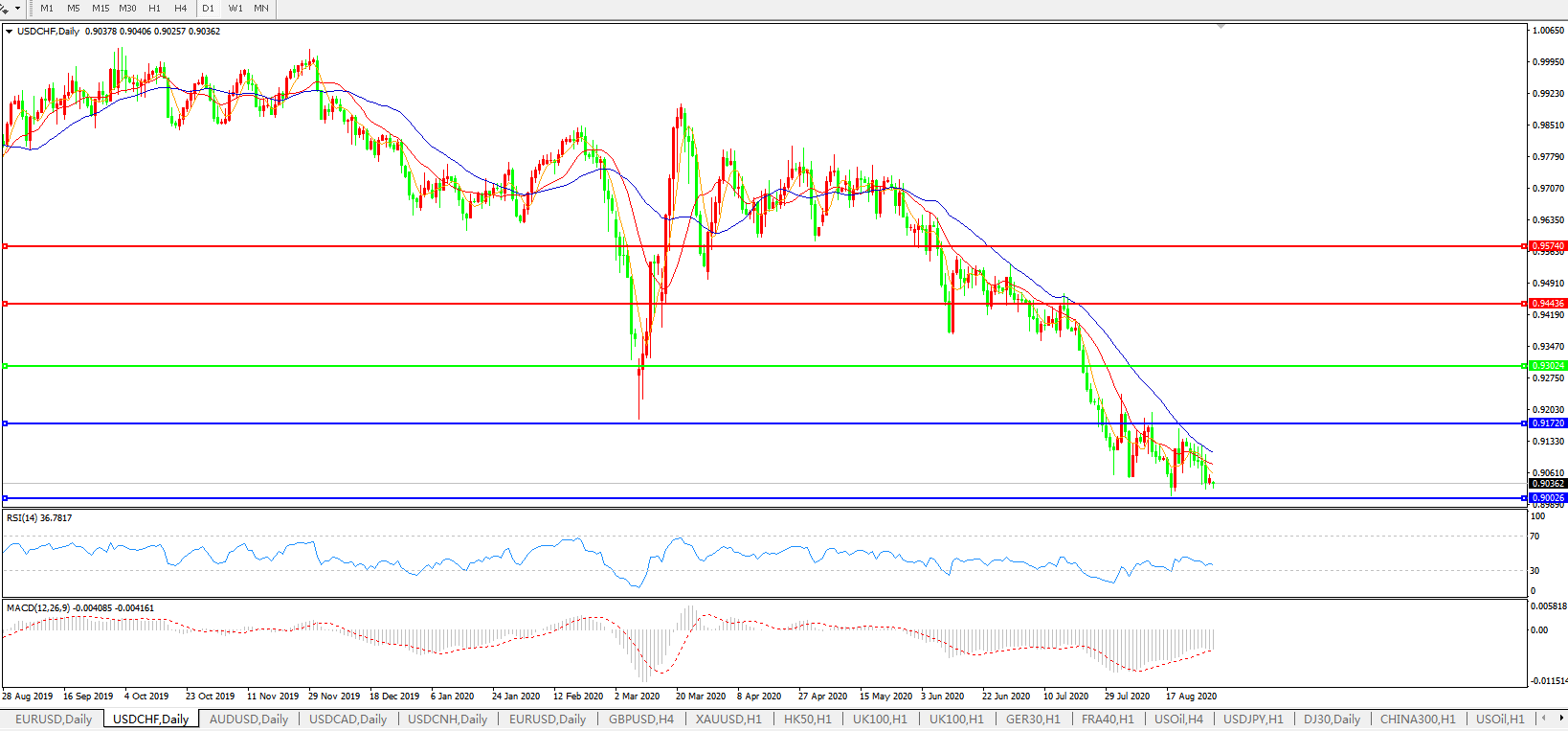 交易策略:0.9300下方看跌,目标0.9170、0.9000