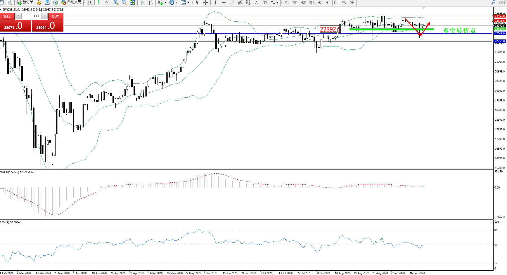 日经225指数9月23日(周三)收盘下跌19.80点,跌幅0.08%,报23340.50点。日本政府相关人士23日透露称,日本政府拟最快于10月初大幅放宽因新冠疫情而采取的边境口岸对策,有条件恢复来自全球各地的入境,目前已开始朝这一方向展开协调。日本政府此前将159个国家和地区列为拒接入境对象。目前,日本已优先放宽商务相关人士的出入境,与越南、泰国等举行个别磋商。部分往来现已恢复。此外,日本还从8月开始接纳政府支付学费等费用的国费留学生。在此基础上,此次将对象扩大至自费留学生以及医疗、文化艺术、体育领域希望前往日本的中长期逗留者。日本央行行长黑田东彦:与日本首相菅义伟就国内和国外经济进行了讨论,同意日本央行、政府密切合作,没有改变2%的通胀目。将根据联合声明实施政策,希望(日元)汇率保持稳定,将继续和日本首相菅义伟进行良好的沟通。没有与日本首相菅义伟特别谈及汇率,没有与菅义伟讨论任何具体的货币政策。