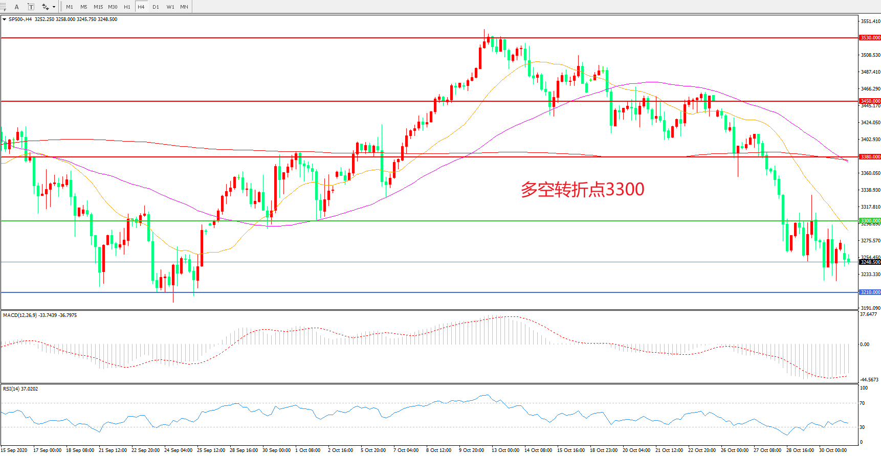 交易策略:在3300.00之下看跌,目标3210.00          3105.00