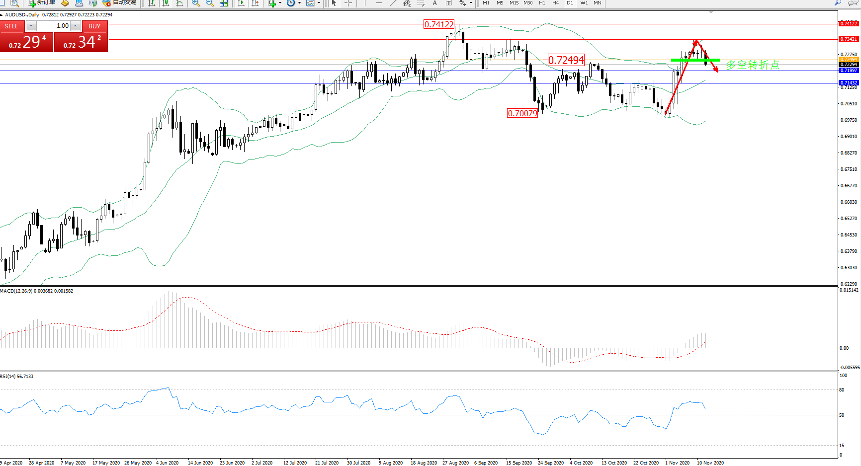 支撑位:0.71997、0.71432