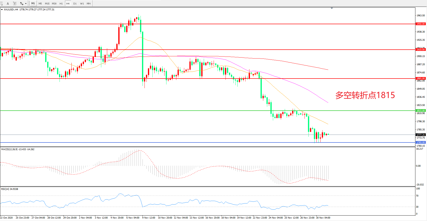 备选策略:在1815.00之下看跌,目标1765.00   1705.00