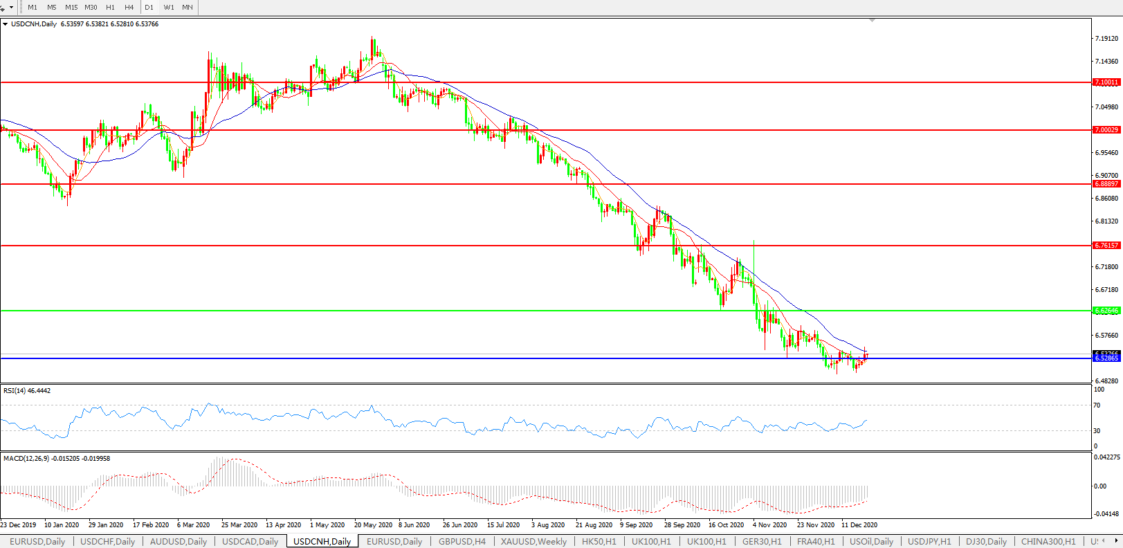 备选策略: 在6.6265之上,看涨,目标价位为6.7615,然后为6.8889。