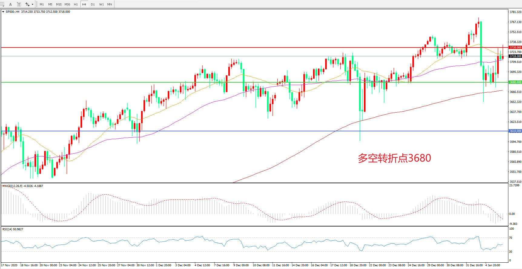 备选策略:在3730.00之下看跌,目标3680.00           3610.00
