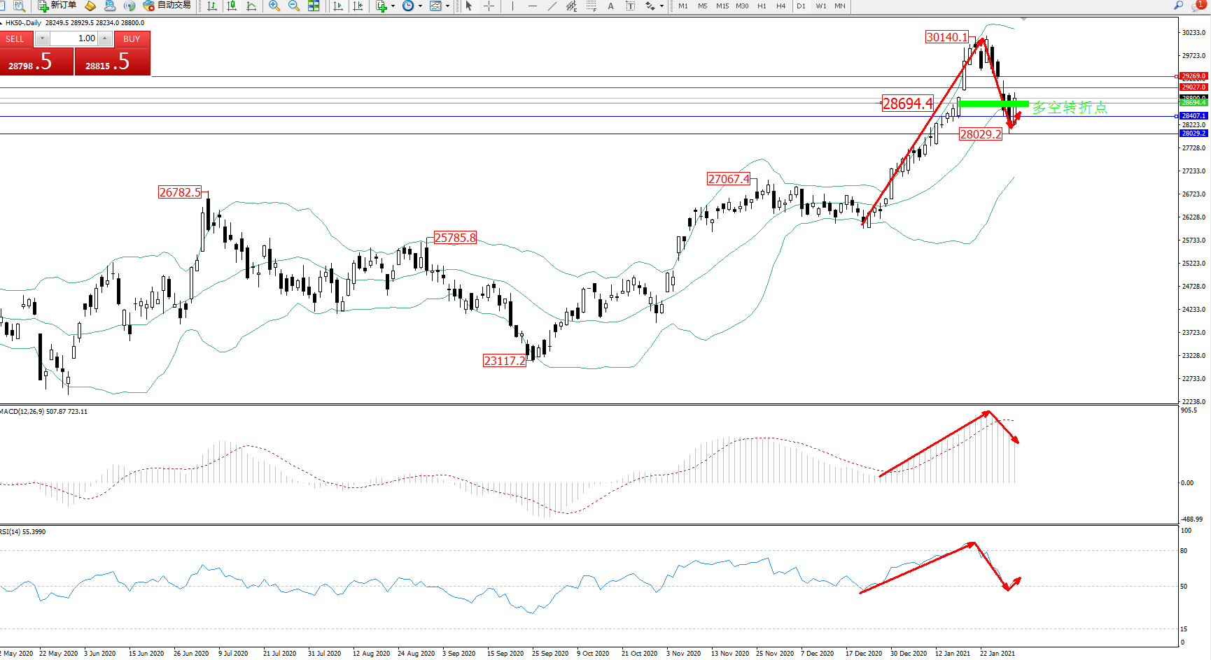 恒指HK50 ——日K线图显示: